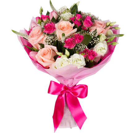 You can present this unusual beautiful bouquet to your beloved and express all the tenderness of your feelings. This composition was created to present moments when words become redundant and flowers speak for themselves. Express your tenderness and boundless love with this wonderful bouquet.