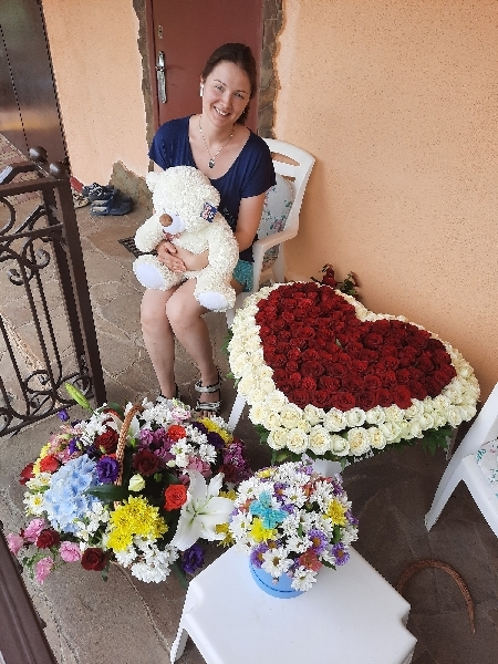 This huge bouquet of roses is a sea of tenderness and words of love that are best whispered. Each rose in it is a reflection of a deep feeling. This bouquet of roses is a real creation of masters, which is full of aromas and beauty. Express your passion and gratitude with the gift of this luxurious arrangement.