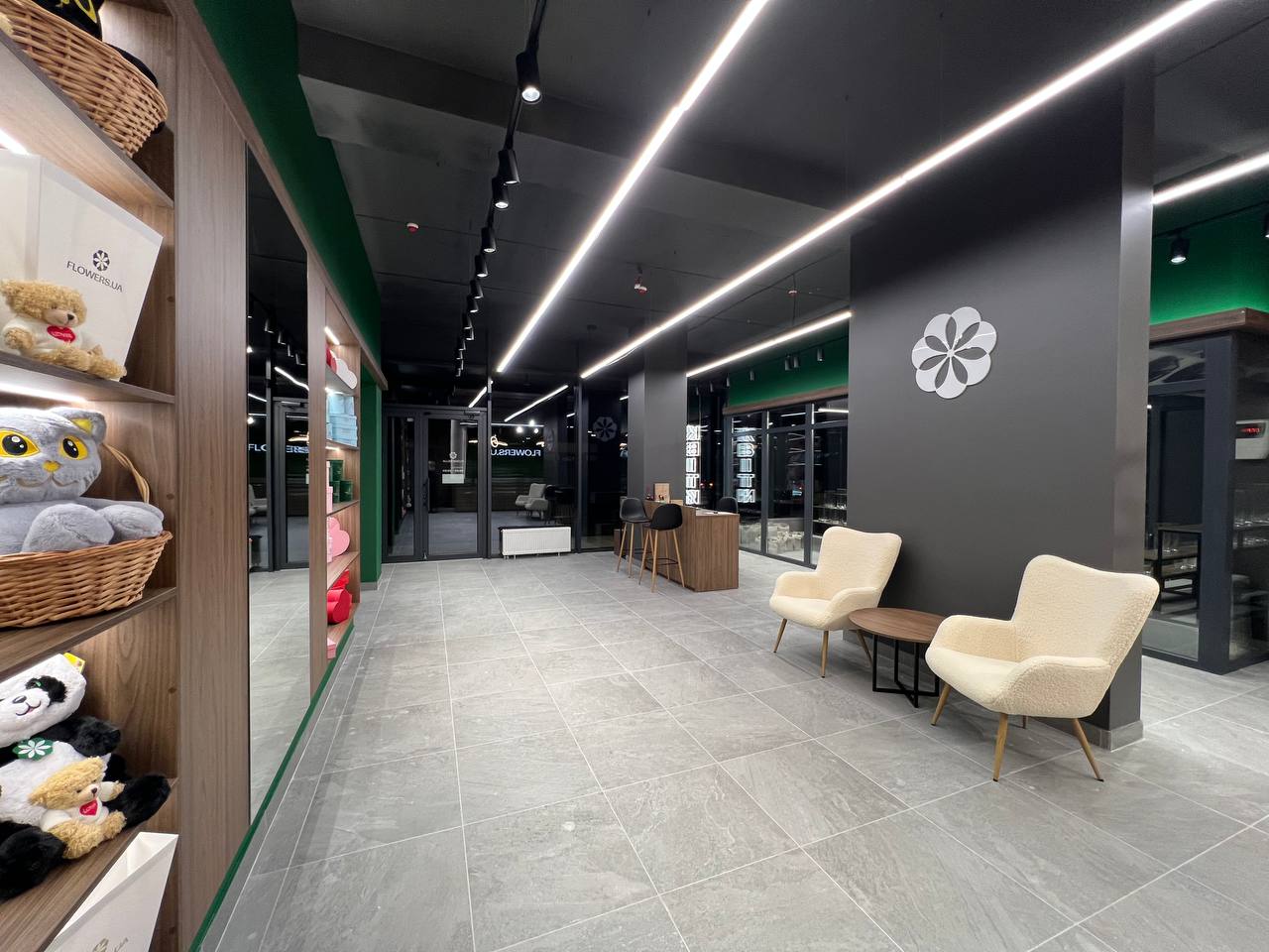 Магазин квітів за адресою Київ, вулиця Віктора Некрасова, 10 — це новий простір FLOWERS.UA із зручним розташуванням, стильним оформленням та продуманою організацією Світлий інтер’єр із великими панорамними вікнами дозволяє добре оглянути асортимент, а доглянутий екстер’єр і помітна вивіска роблять магазин легко впізнаваним. Усередині просторо та комфортно — створені умови для зручного вибору букетів, перегляду композицій та отримання консультацій.