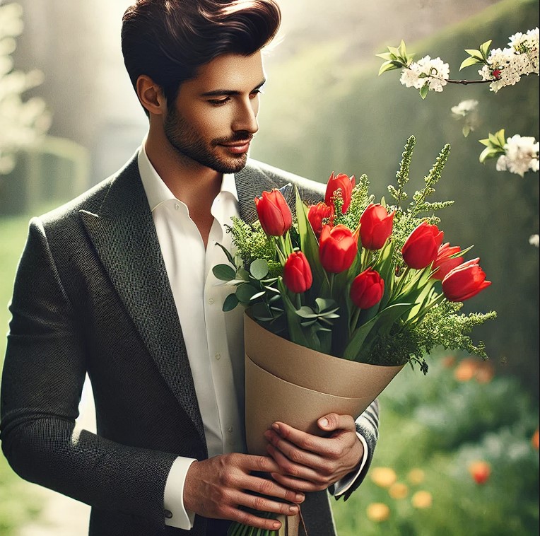 Для чоловіків підійдуть букети в мінімалістичному стилі з використанням стриманих кольорів — білих, синіх, зелених. Важливо уникати надто яскравих відтінків і віддати перевагу лаконічним композиціям. Квіти в коробці або кошику з геометричними формами додадуть вашому подарунку вишуканості.