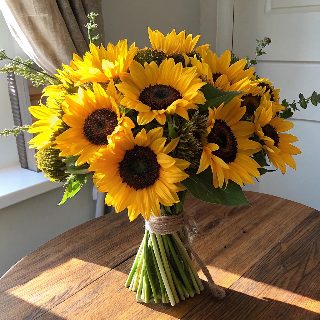 • "Сонячна симфонія": соняшники, ромашки, хризантеми — тепло в композиції та вибір для святкового настрою.