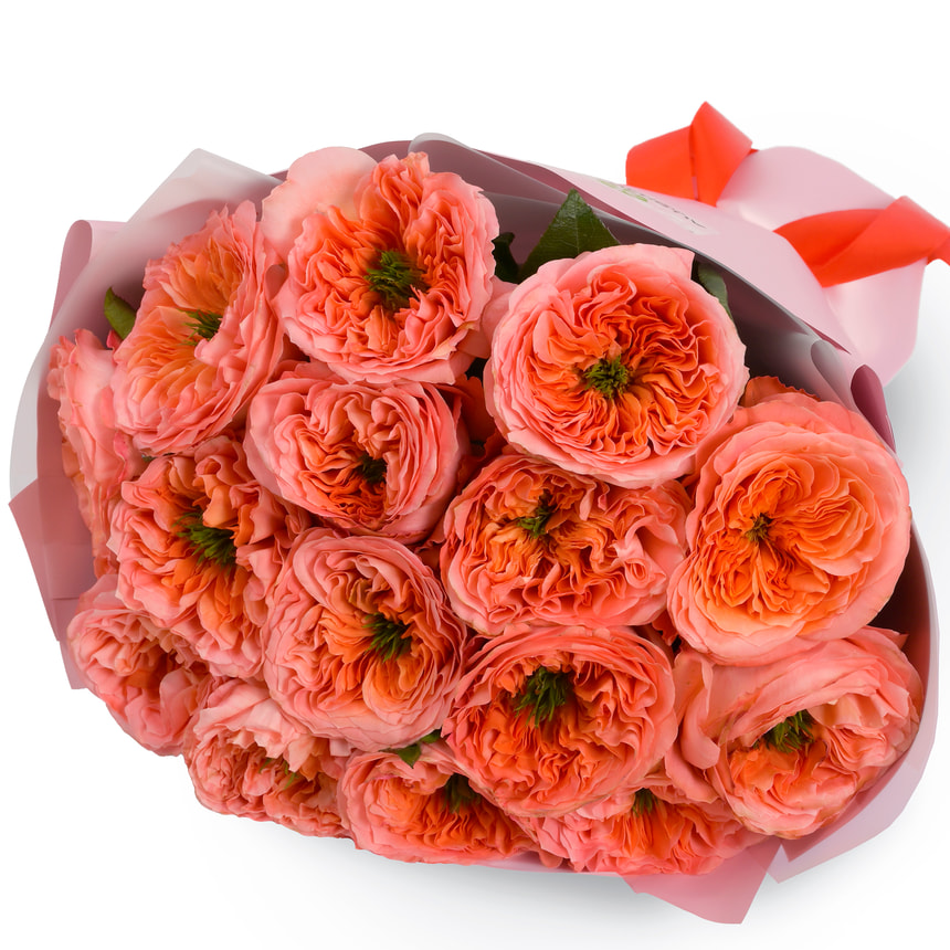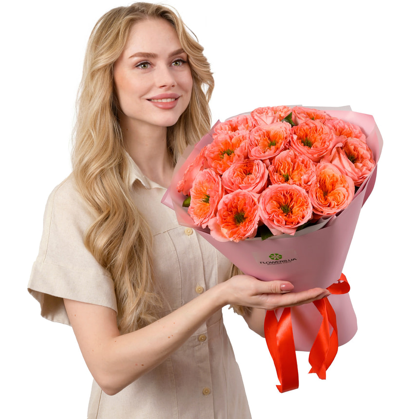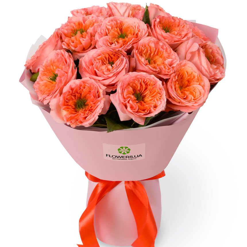 Неймовірно красивий, яскравий букет півонієподібних троянд «Мандарин Експрешн» - символ енергії, запалу, творчості. Він не залишить байдужою близьку вам людину і стане ідеальним вибором для особливого подарунка.